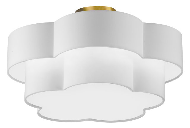 TWO TIER SCALLOPED FABRIC SHADE FLUSH MOUNT AGED BRASS/WHITE SHADE