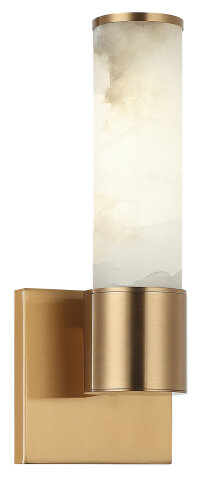SINGLE LIGHT WALL SCONCE WITH SPANISH ALABASTER SHADE AGED GOLD BRASS