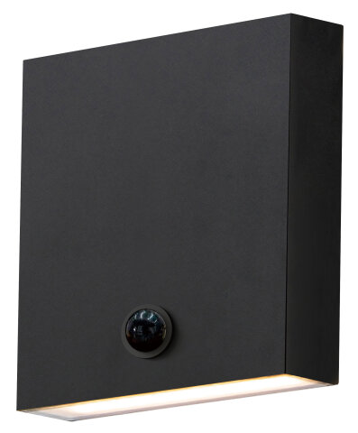 6.25" SQUARE OUTDOOR WALL SCONCE WITH BUILT-IN MOTION SENSOR BLACK WITH MOTION SENSOR 3000K, 90CRI, 1200 DELIVERED LUMENS