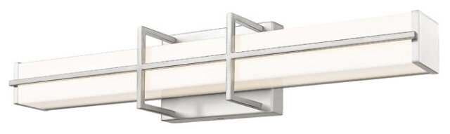 25" LED VANITY FIXTURE CHOICE OF 5CCT. FIXTURE HAS GEOMETRICAL FRAME BRUSHED NICKEL, WHITE DIFFUSER 5CCT, 90CRI, 1550 DELIVERED LUMENS