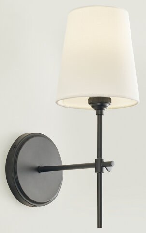 SCONCE W/ SLENDER STEM AND SHADE MIDNIGHT BLACK FABRIC WHITE LINEN