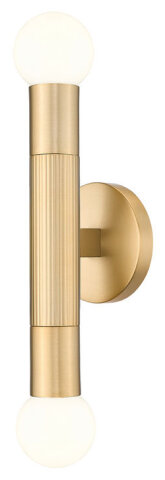 TWO LIGHT WALL SCONCE WITH RIBBED CENTER ACCENT MODERN GOLD