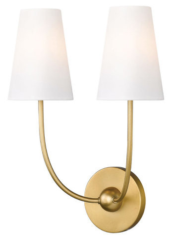 RUBBED BRASS WITH WHITE FABRIC SHADES