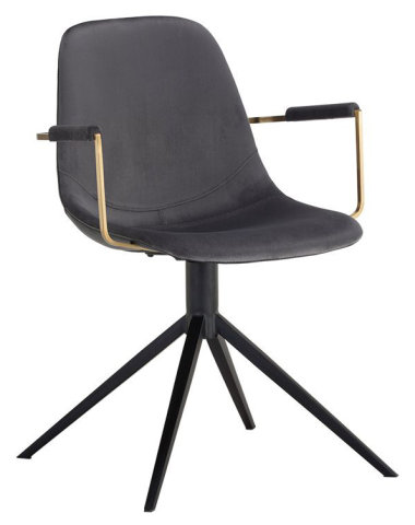 UPHOLSTERED METAL ARM DESK CHAIR ON METAL SWIVEL BASE SLATE TINT/NIGHTFALL BLACK GOLD ARMS