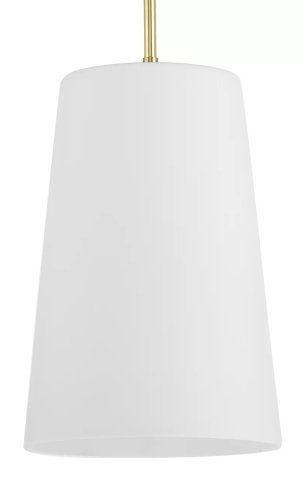 10.5" PENDANT WITH LONG CONE SHAPED GLASS SHADE SATIN BRASS, ETCHED WHITE GLASS