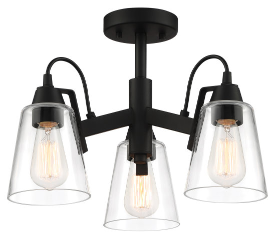 3 LIGHT GLASS CONE SEMI FLUSH WITH