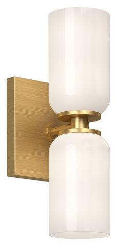 VERSATILE CYLINDRICAL WALL SCONCE BRUSHED GOLD WITH GLOSSY OPAL GLASS