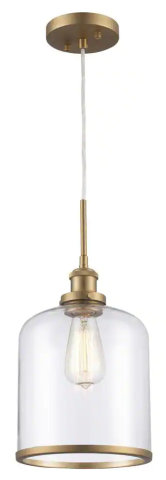 SINGLE LIGHT MINI PENDANT WITH BANDED BELL GLASS ANTIQUE GOLD