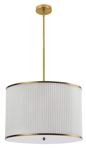 PLEATED SHADE DRUM PENDANT AGED GOLD BRASS WITH WHITE SHADE