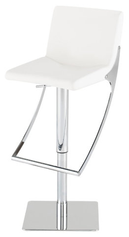 ADJUSTABLE SWIVEL BAR STOOL WITH METAL FOOT REST WHITE NAUGAHYDE SEAT/CHROME STEEL BASE