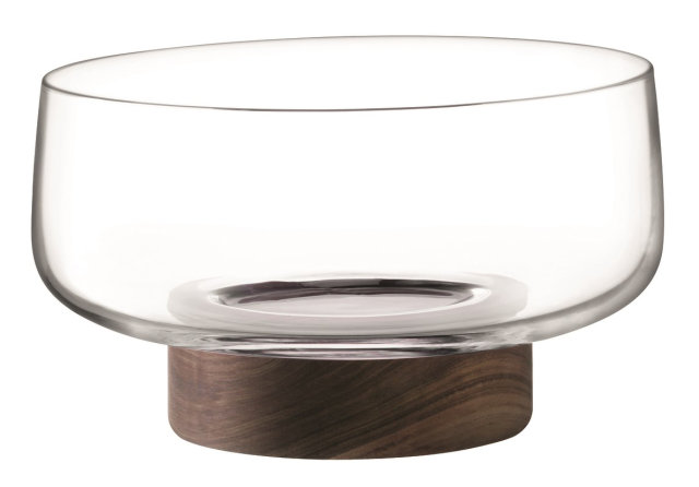 ROUND GLASS BOWL ON WOODEN BASE